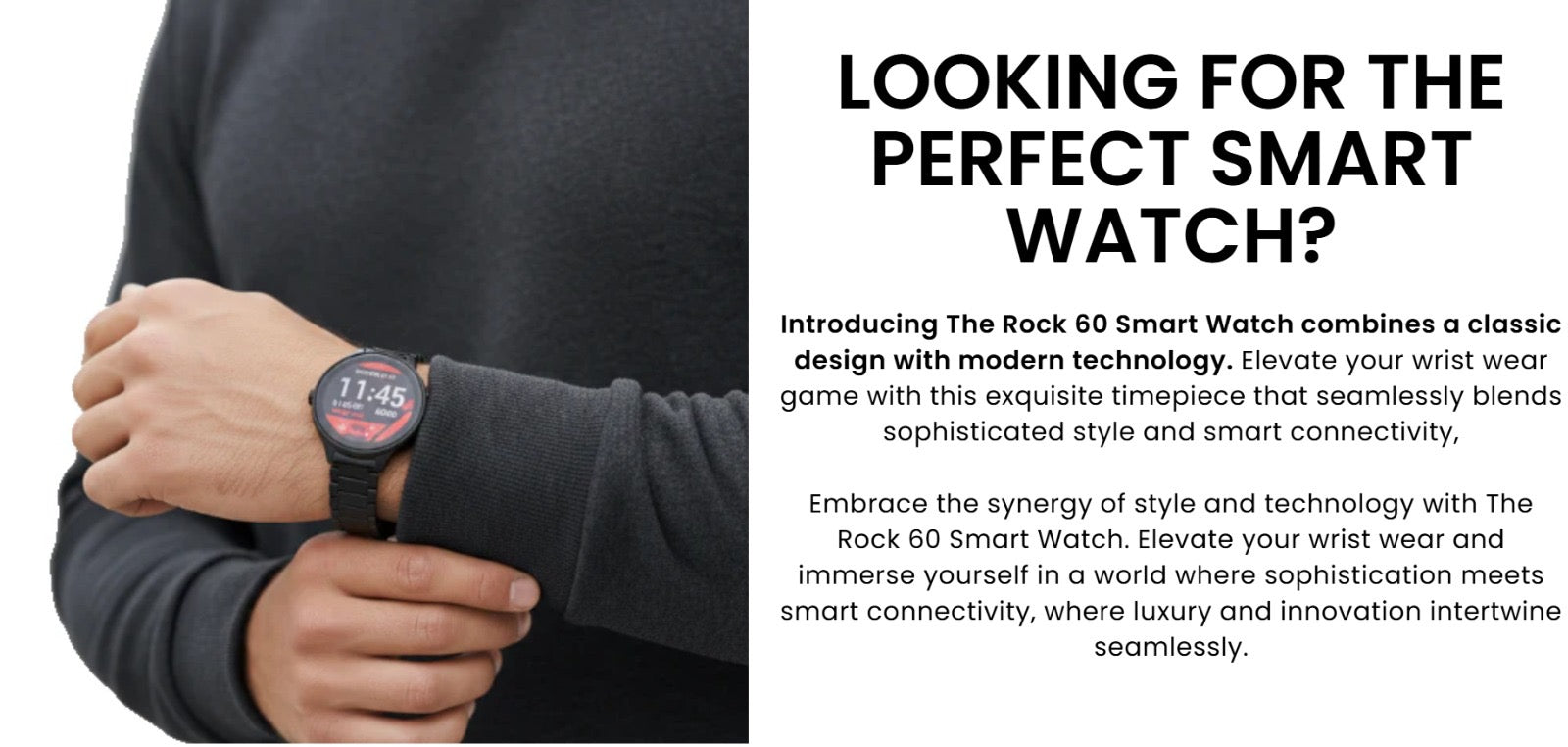 The Rock 60 German Smartwatch comes with a latest and unique design, built for people who want style and smart features in one watch. Its modern look makes it perfect for daily wear, workouts, and special occasions.
